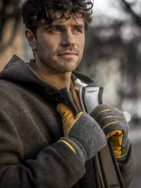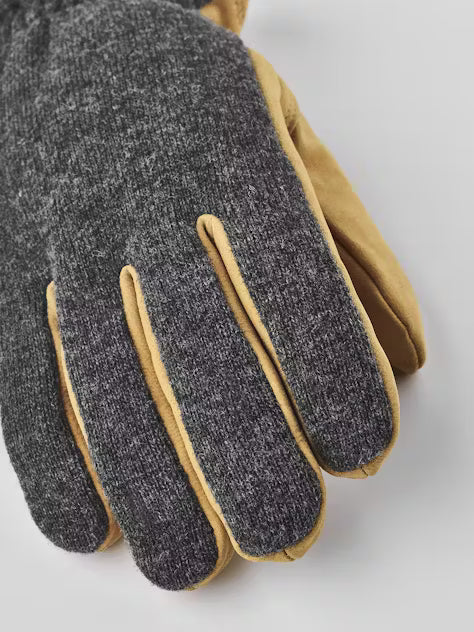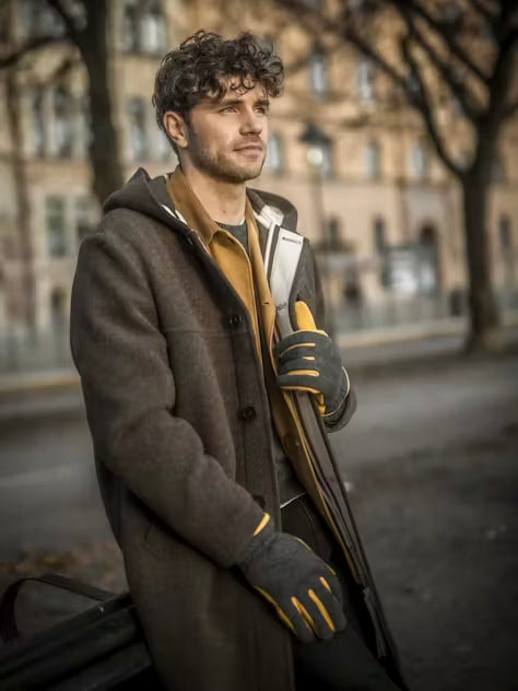 A timeless leather glove in sturdy nubuck leather, with a backhand in wool jersey. An attractive, warming everyday glove for men, with a relaxed style that works just as well for commuting to the office or exploring nature. A soft fleece lining with Primaloft Gold synthetic insulation keeps the hands warm in chilly winter weather. The wrist is relatively short, with an elasticated backhand and a ribbed cuff that gently encloses the wrist.