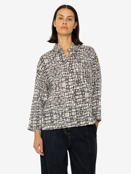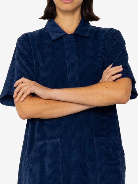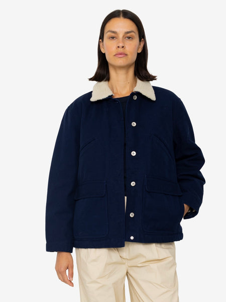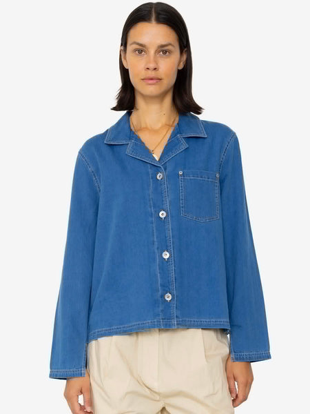 Folk Women Pleated Shirt in Indigo Floatstitch