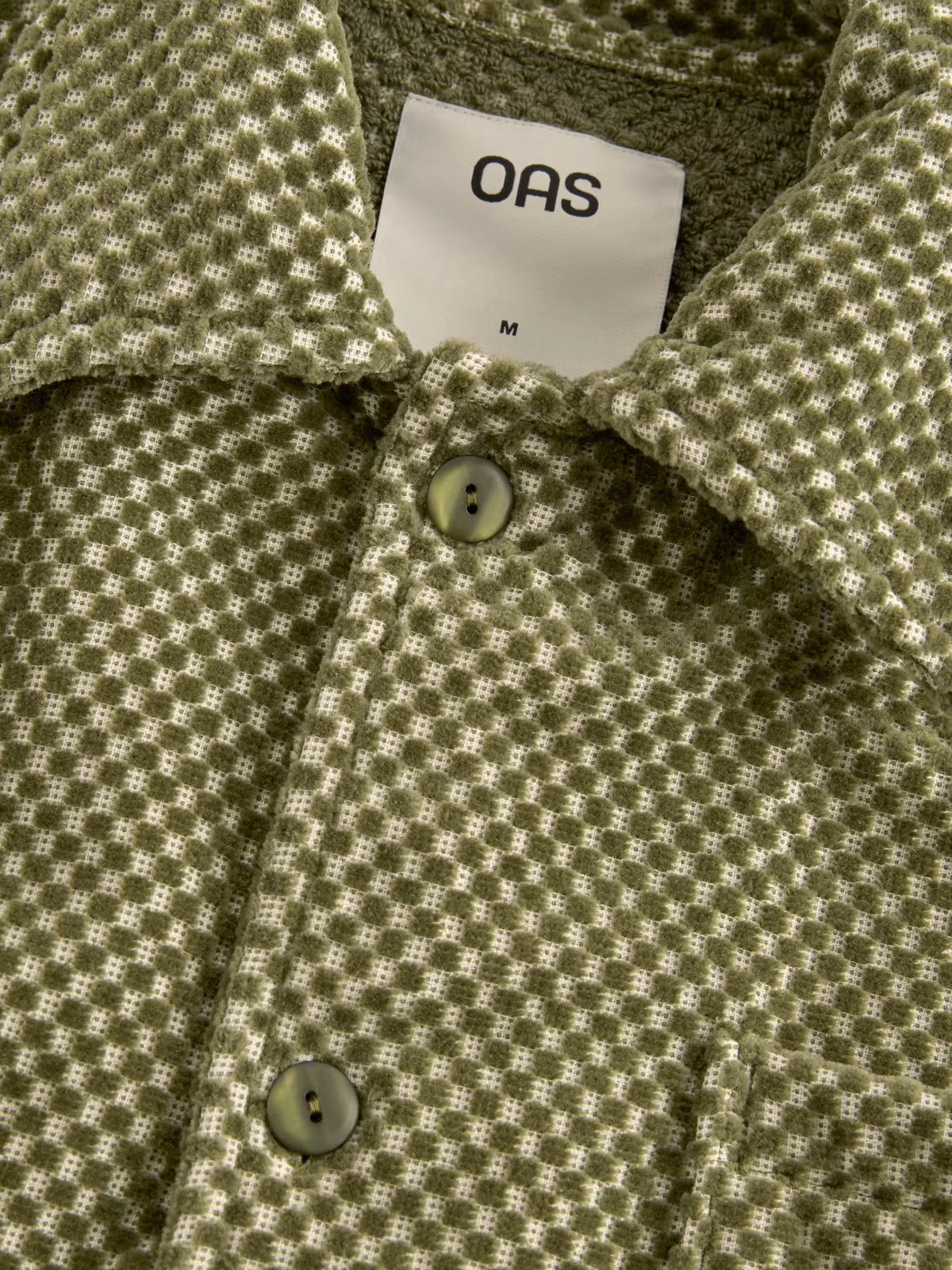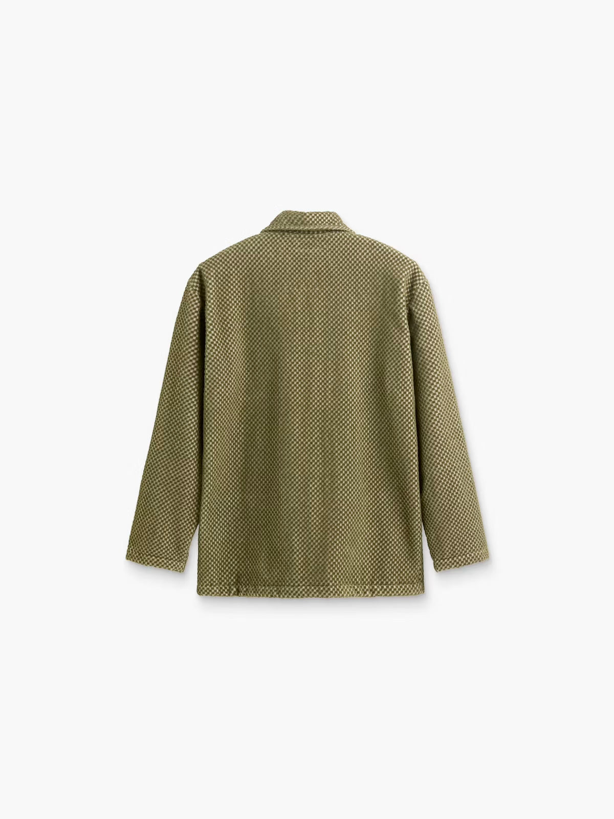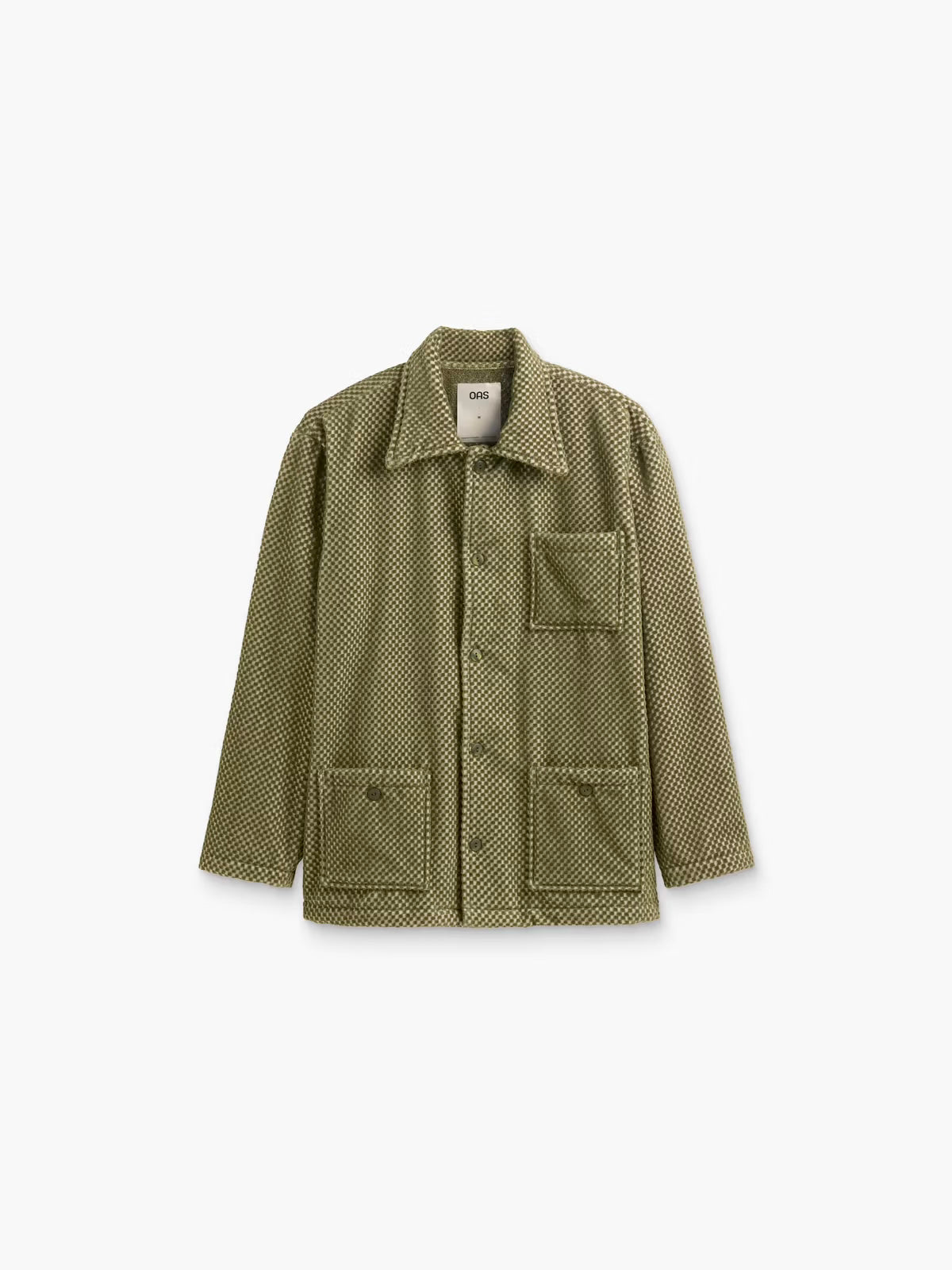 Casual chore jacket in heavyweight Terry velour. A breathable fabric with a textured surface. Featuring three patch pockets at the front and a straight fit.