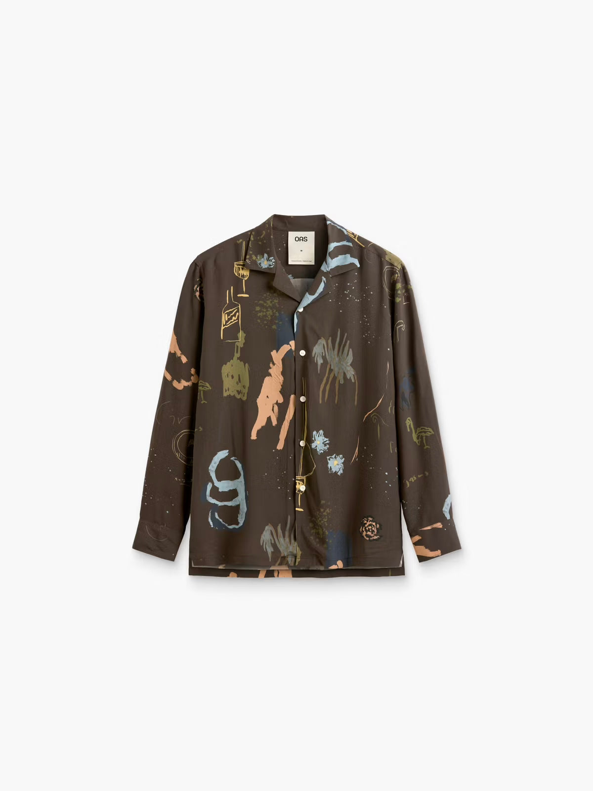 Long sleeve shirt cut from a lightweight viscose fabric with an abstract print. A soft texture with a silky breathable feel. Featuring a button front, slightly dropped shoulder and relaxed fit.