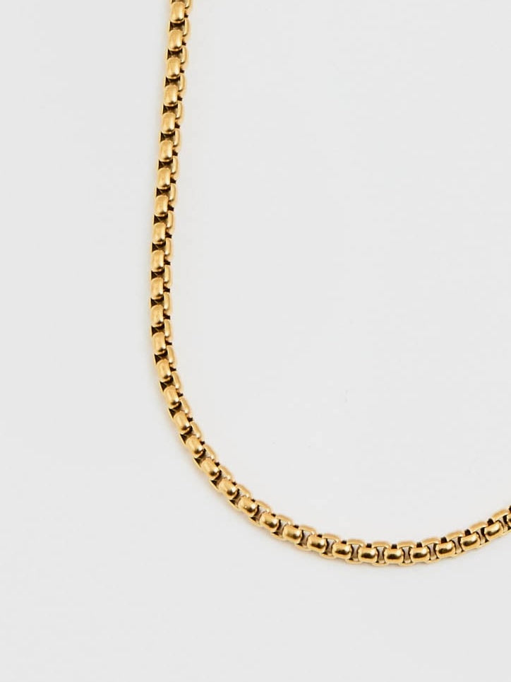 A slim box chain, silky and architectural feel.