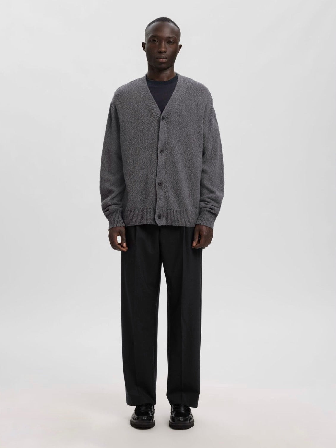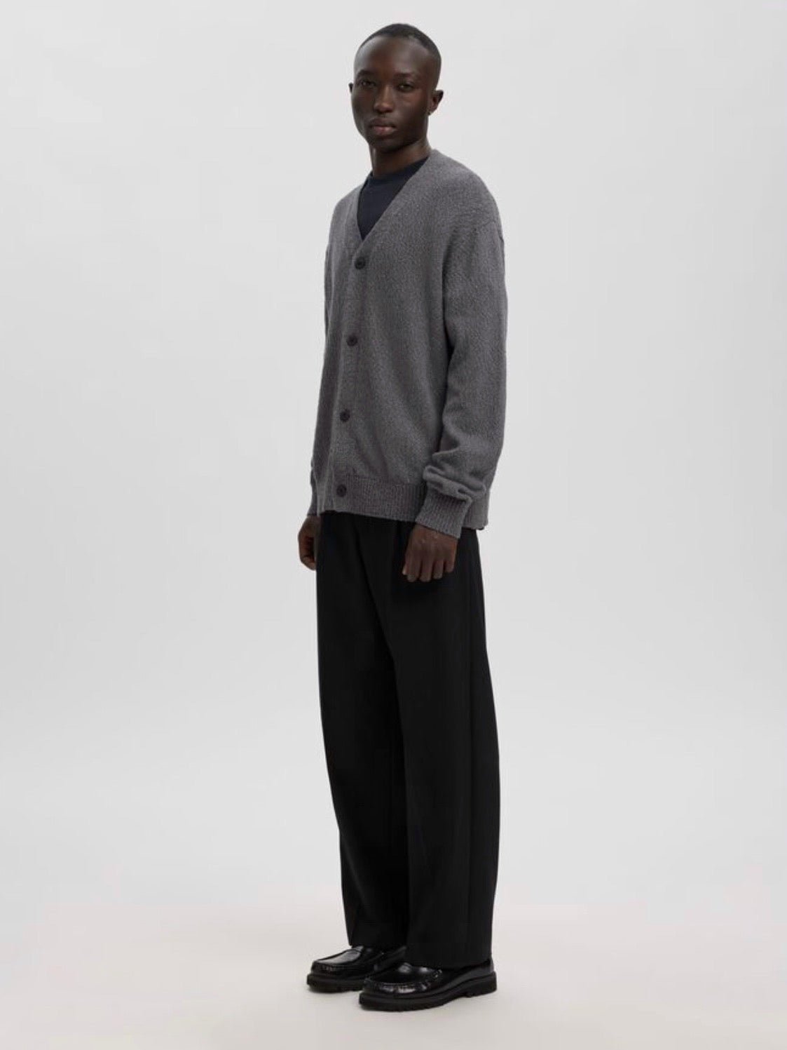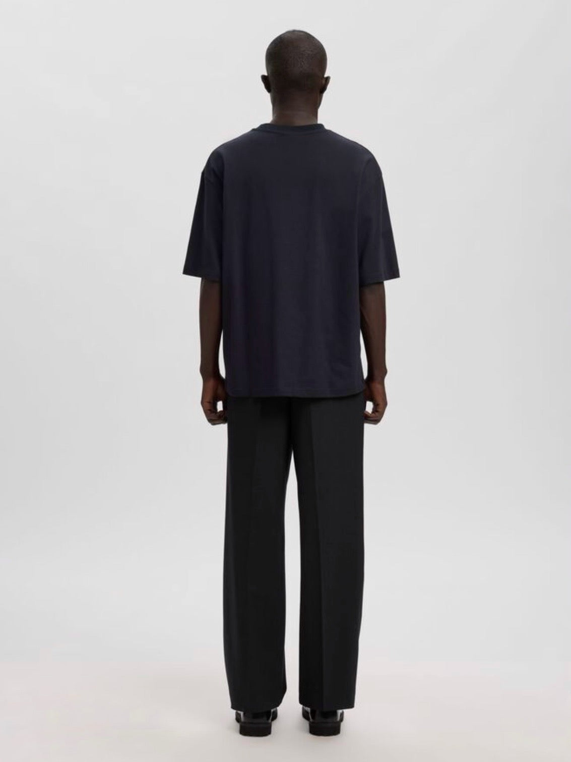 These trousers are a stylish addition to your everyday rotation. Wear them with loafers and an oversized crewneck jumper. - Mid waist - Zip fly with button fastening - Belt loops - Side and back pockets - Centre press folds - Relaxed fit