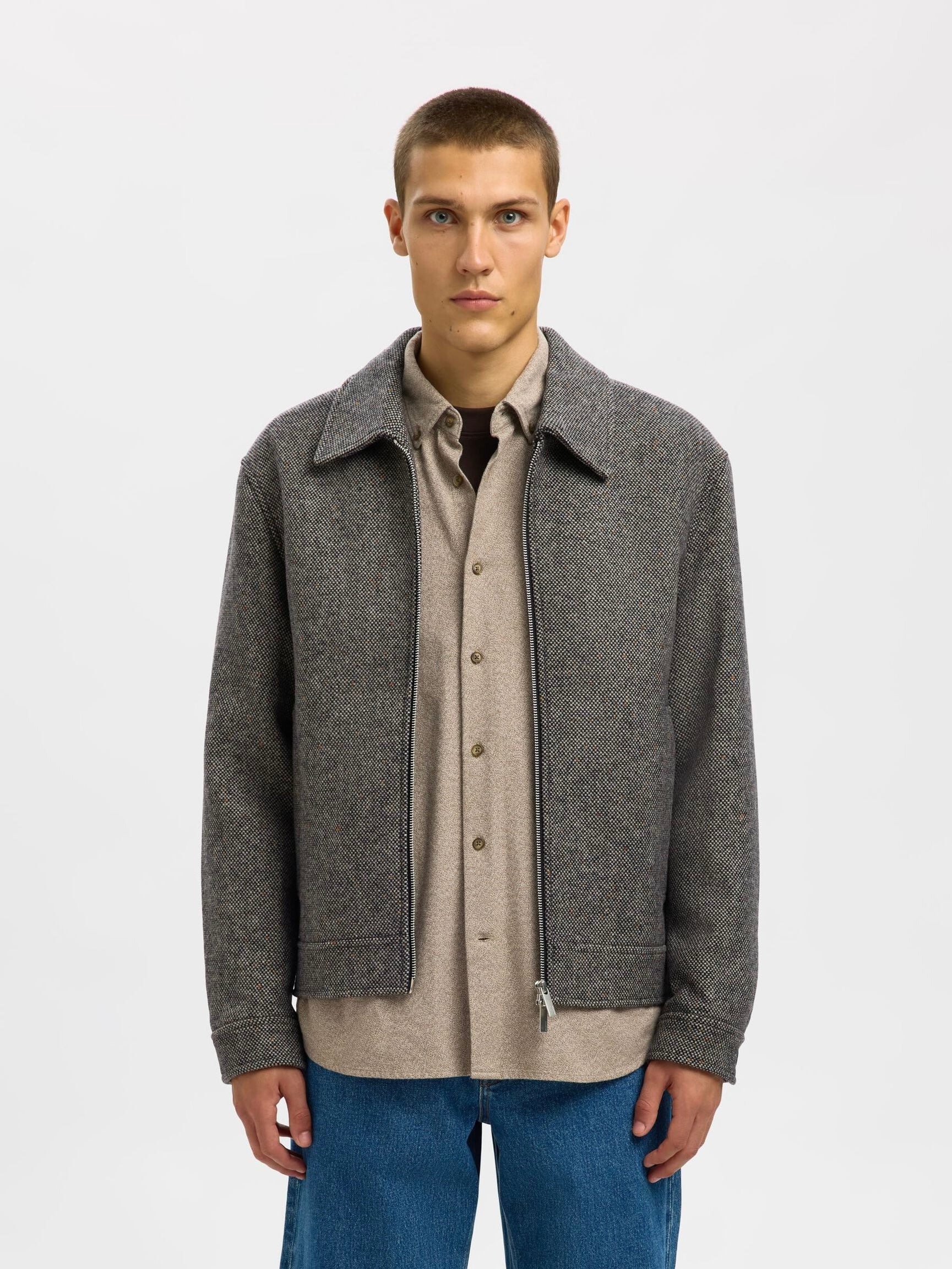 Short wool-blend jacket, both warm and stylish. Featuring a two-way zip fastening, buttoned cuffs and welted side pockets.