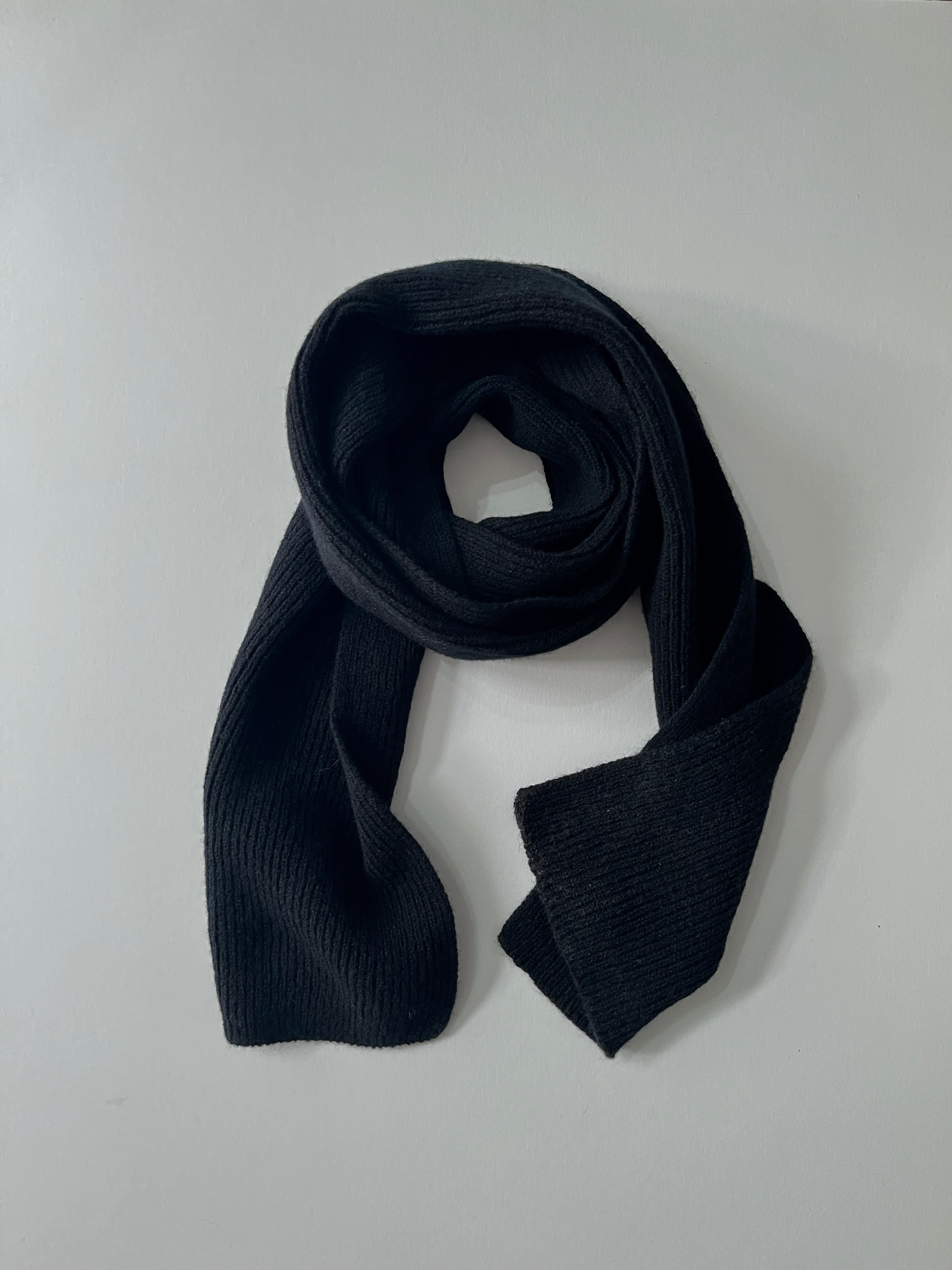 A cosy single rib knitted scarf for keeping the winter cold at bay.