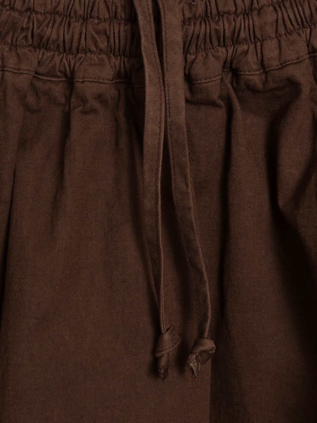 Stretch twill midi skirt in garment-dyed brown with elasticated waist and adjustable drawcords. Features a balloon shape, panel construction, side seam pockets, and internal tab to hold drawcord. Made with a modal and cotton blend for a regular fit.