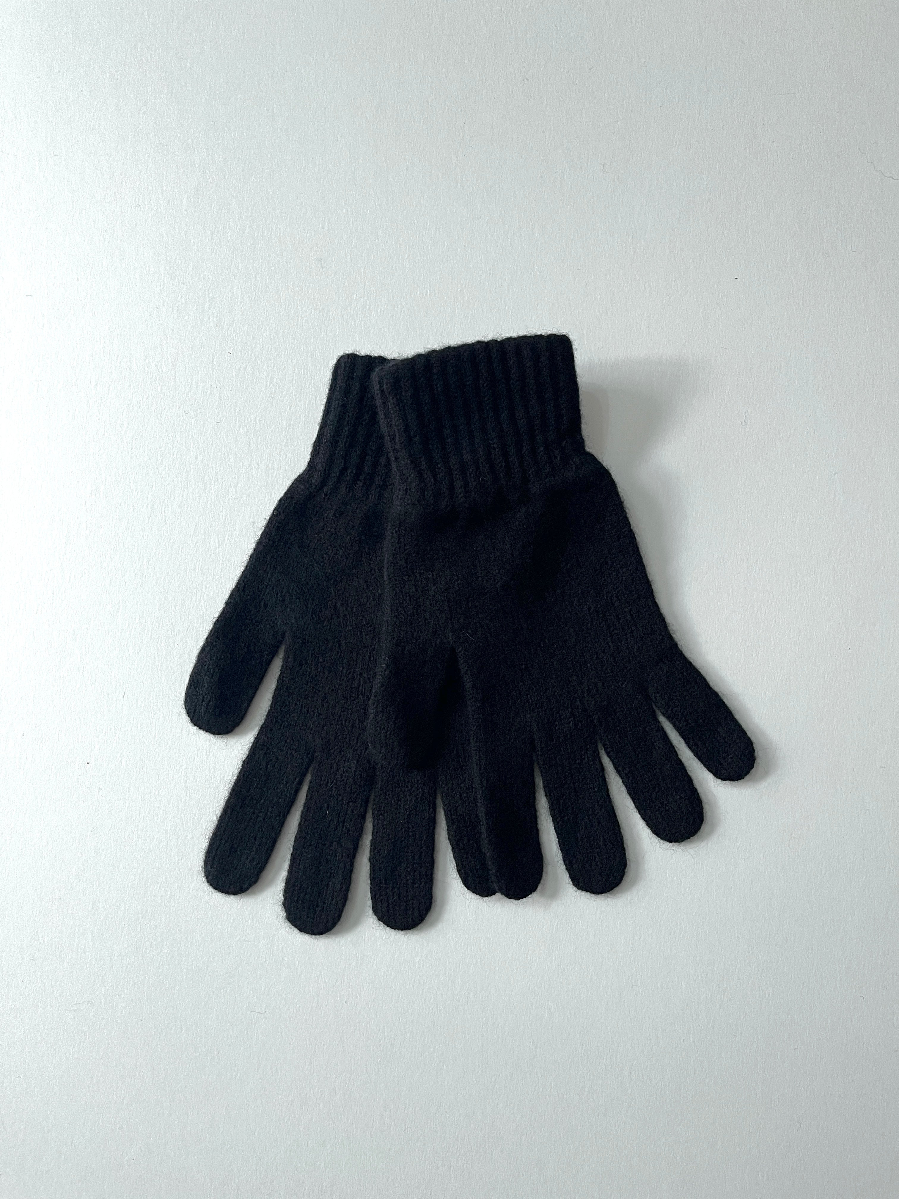 Classic unisex knitted gloves with ribbed cuff.